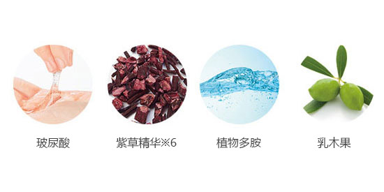 含有玻尿酸、神经醯胺、紫草根精华※6、乳木果※7等48种※5保溼成分。洗完脸后能拥有水润柔滑的肌肤。