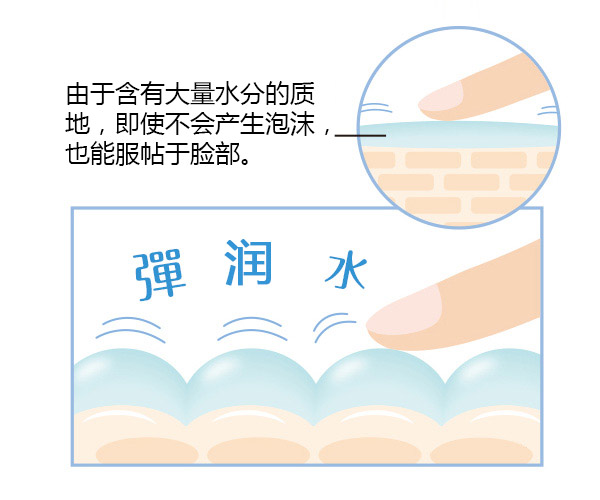 以水为基底的弹力纱能减少对肌肤产生的摩擦。洗脸同时按摩,轻松打造柔滑细致的肌肤。